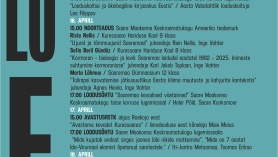 - 17.00 LOODUSÕHTU Saare Maakonna Keskraamatukogu teise korruse lugemissaal "Looduskaitse ja ökoloogiline kirjaoskus Eestis" / Aasta Vabatahtlik looduskaitsja Leo Filippov