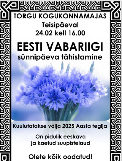 Traditsiooniline aastapäeva aktus: pidulikud kõned, Torgu Tegija 2025 tunnustamine, eeskava, suupistelaud.